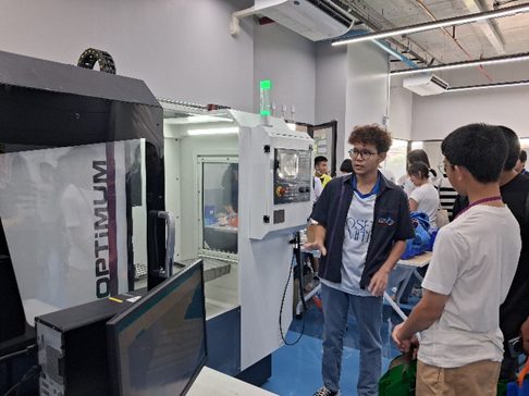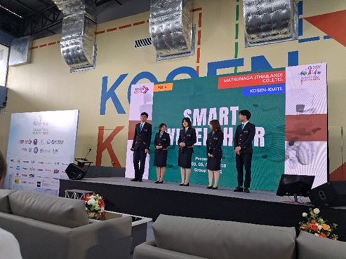 タイでは、KOSENの産業界からの認知度は日本ほど高くありません。そこで、学生に企業を知ってもらうと同時に、企業の方にもタイ高専の学生がどのようなことを学んできていて、どんなことができるかを知ってもらう必要があります。そのため、写真に示すようなShow caseと呼ばれる、学生の成果発表の機会を設けて、学生の能力やポテンシャルを企業にアピールする場も設けています(写真2)。なお、タイ高専の学生の多くは、人前でプレゼンをすることが大好きです。