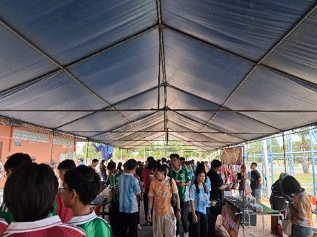 これらのイベントを開催する上で、保護者によるサポートが非常に手厚いです。秋田高専でも後援会によるご支援によって、多くの行事を実施できています。同様に、タイ高専でのこれらの行事でも、保護者によるサポートが、イベントのにぎわいに一役買っています。イベント毎にスナックボックス(タイ高専へ研修に参加した学生さんは分かると思いますが、飲み物と菓子パンやケーキが同梱されたものです)が毎回提供され、さらにSports Dayでは、写真6の様に、保護者の有志の方が屋台(Street foods)を設置して、食べ物・飲み物の提供が無料で行われており、日本の高専では普段あまり直接目にすることができない保護者のサポートを実感することができます。