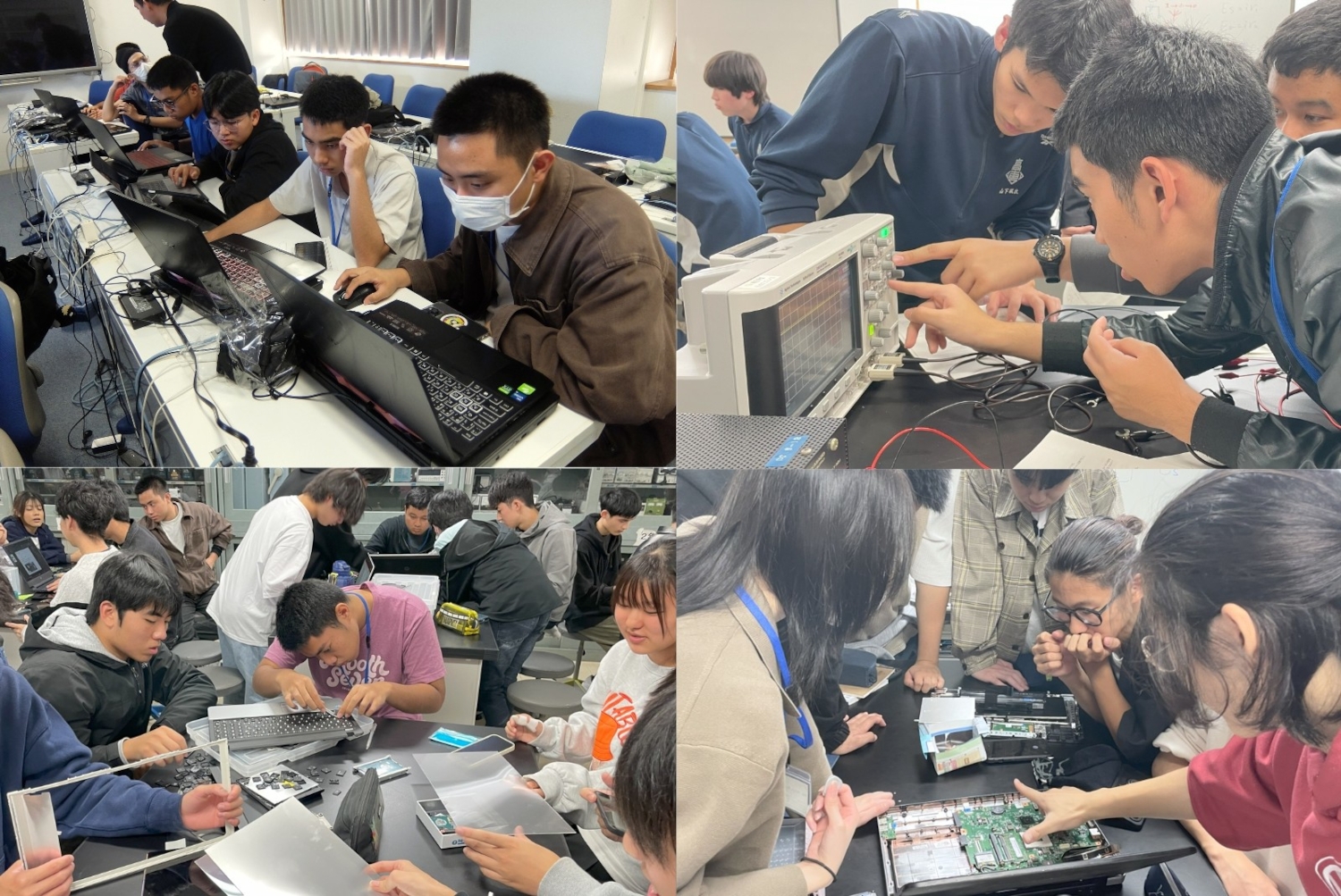 タイ高専の学生たちは、電気・電子・情報系を中心としたカリキュラムに精力的に取り組みました。具体的な専門プログラムとしては、「電気情報基礎実験、コンピュータ基礎(電気・電子・情報系3学年)」や、環境技術に触れる「太陽光発電セル実習」など多岐にわたります。