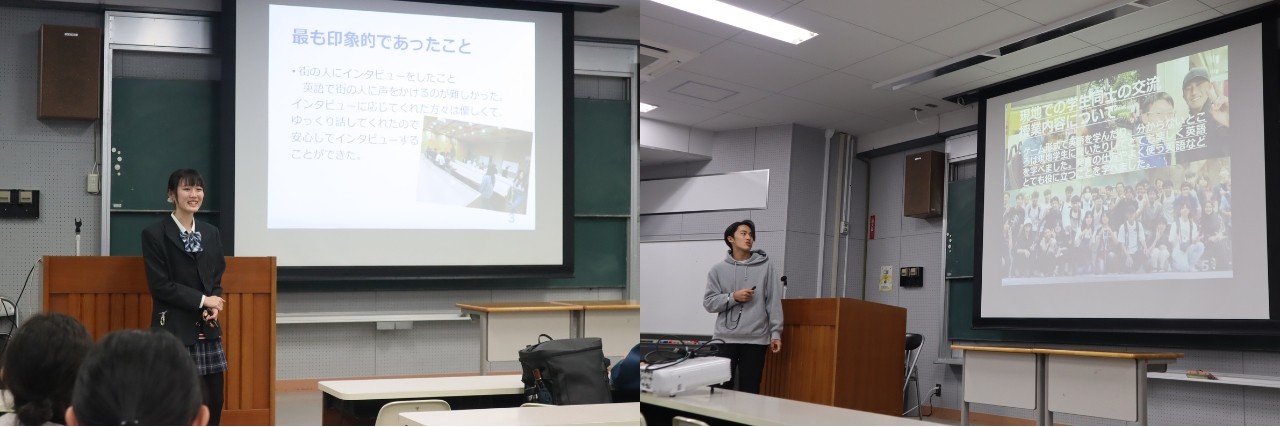 秋田高専では11月12日に海外研修報告会を開催し、今年度の「タイ交流研修」(8月)と「シンガポール英語研修」(9月)の参加学生が、現地での貴重な体験と成長を報告しました。