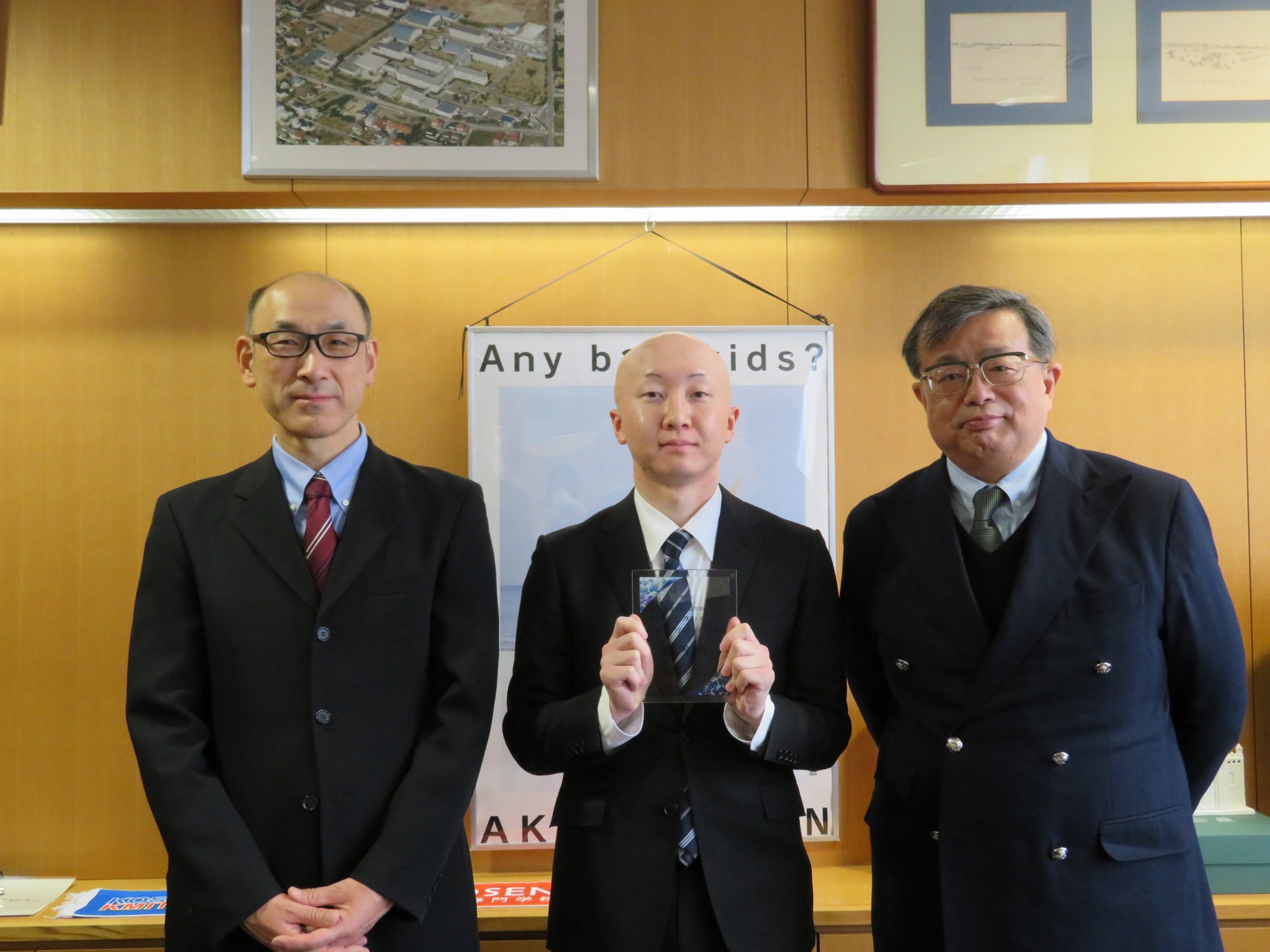 後日、鈴木さんと指導教員で専攻科長の土木・建築系 山添誠隆教授の2名で高橋校長に受賞の報告を行いました。