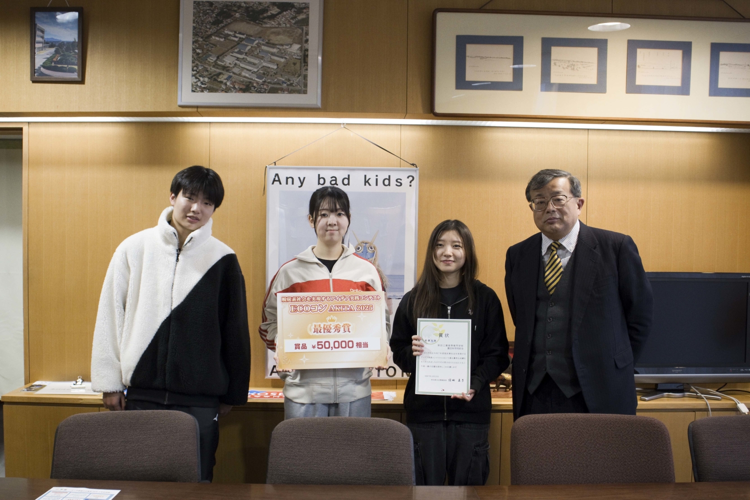 12月23日(火)にさきがけホールで開催された、秋田県主催の「脱炭素社会を実現するアイデア実践コンテスト(ECOコン)」最終審査会において、園芸科学同好会所属の本校学生が参加し、最優秀賞を受賞しました。本コンテストは、2050年カーボンニュートラルの実現に向け、将来社会の中心となって活躍する若者を対象としたアイデアの企画·実践コンテストで、2023年から毎年開催されています。