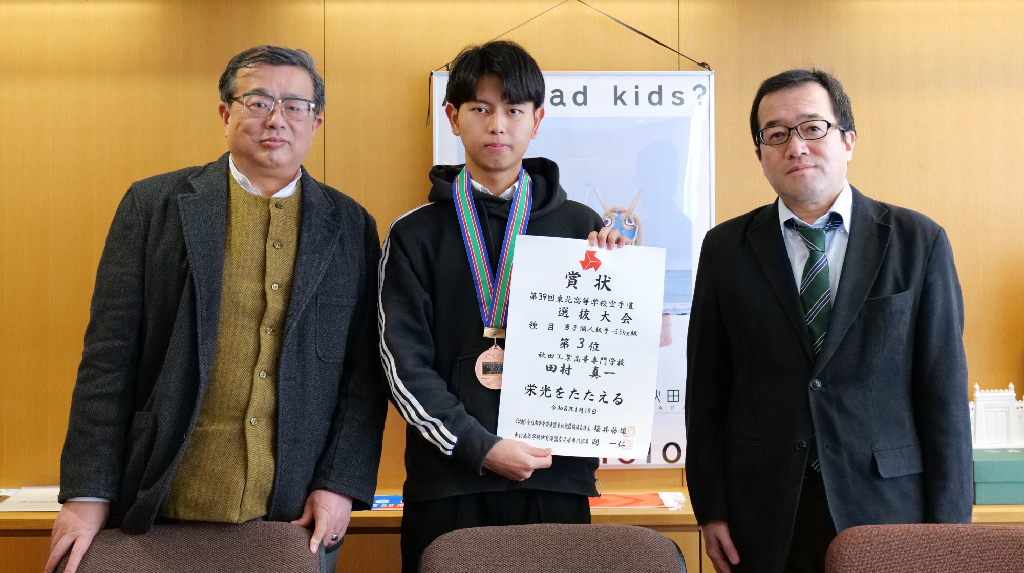 1月18日に行われた第39回東北高等学校空手道選抜大会(男子個人組手55kg級)にて、2年生(物質・生物系)の田村真一君が第3位入賞を果たしました。