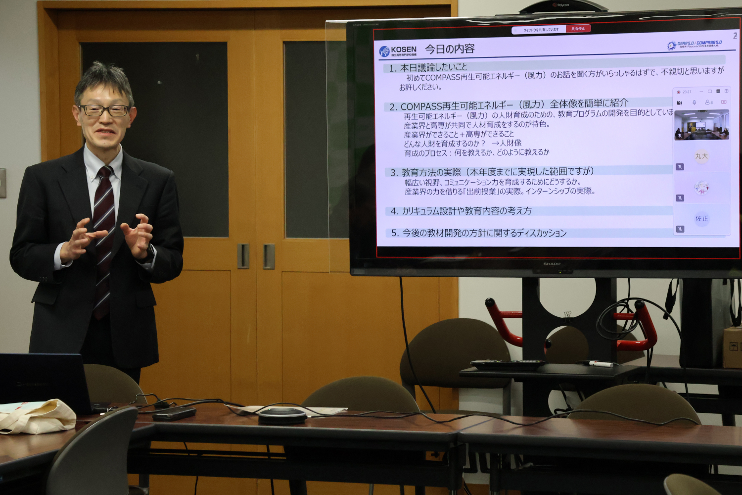 本研究会は、COMPASS5.0再生可能エネルギー(風力)分野において、2025年度に進めてきた教材開発および教育実践の成果と課題を整理するとともに、今後他高専へ展開することを見据えた教材・カリキュラムの在り方を議論することを目的として開催されました。
