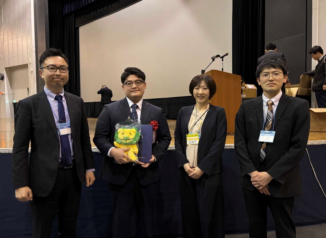 本賞は、大学4年生および高等専門学校専攻科2年生を対象とした賞であり、発表を聴講した参加者の投票により受賞者が決定されます。今回、3年間にわたる地道な研究成果が高く評価され、全国の大学生の発表を含む中で最優秀賞に選ばれました。